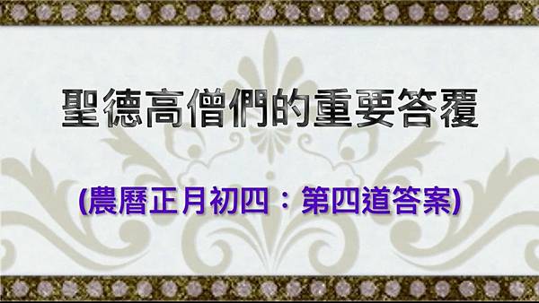 聖德高僧們的重要答覆(農曆正月初四:第四道答案)(視頻)