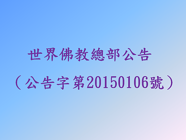 世界佛教總部公告 (公告字第20150106號)