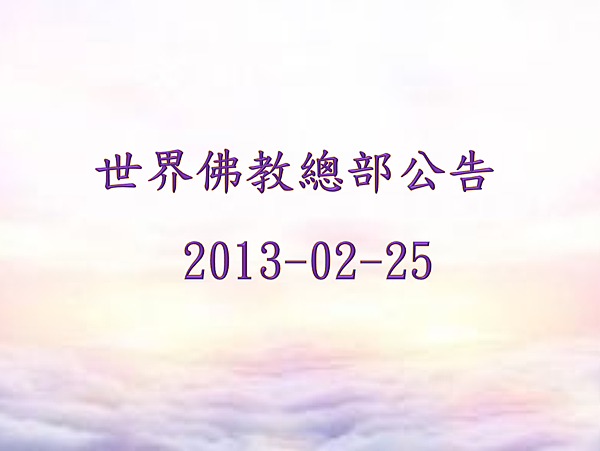 文章來源:https://holydharma.pixnet.net/blog/post/365185226-世界佛教總部公告 2013-02-25/