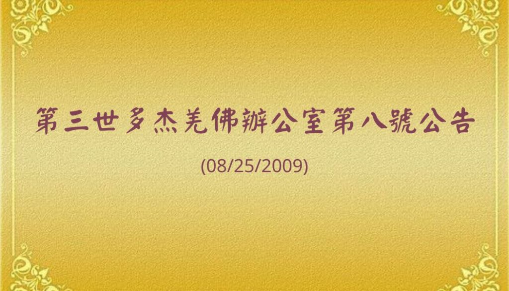 第三世多杰羌佛辦公室第八號公告 (08/25/2009)